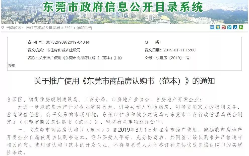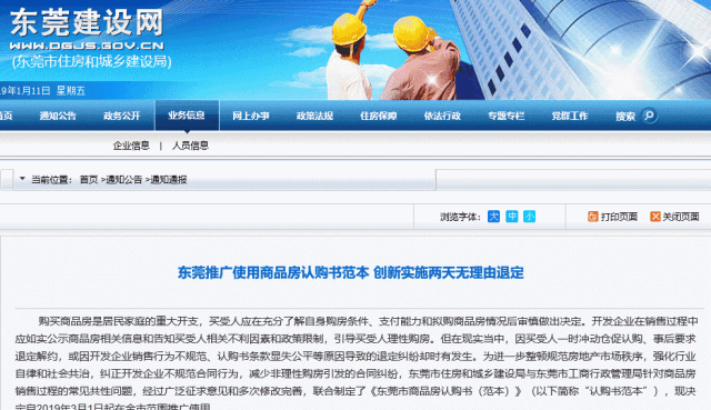 无理由退房时代正式来临。 咋一看之下 像是楼盘的广告? 不,这可是地方住建委的正经公告 1月11日,广东东莞市正式出台了全国首个“无理由退房”新规,将在3月1日起执行。 看点 01 如何无理由退房呢?需要满足什么条件? 根据《通知》文件显示,购房者在认购书签订之日起两个自然日内(不含签订当日)要求解除认购书退回定金,如双方尚未签署《商品房买卖合同》的,出售方应当退还。 什么意思呢?就是说你看中了某套房,并跟开发商签订了认购合同交了定金,如果两天内你反悔不想买了,开发商应全额退还你的定金,这很好的保护了购房者的权益,这就跟在淘宝买东西一样,在规定的时间内,你可以无理由解除认购书和退回定金。 既然给了购房者反悔的机会,那如果签了认购协议,是不是开发商也可以反悔不卖呢? 当然不是! 如果开发商反悔,要双倍返还定金! 虽然目前规范认购书不是强制开发商使用,但住建部门表示,将要求开发商统一使用新的《认购书》范本,并出台相关配套措施来鼓励开发商,如果不使用,将享受不到行政部门管理上的放宽措施。 看点 02 国内唯一一个正式出台“无理由退房”政策的城市 在查询相关资料后发现,目前,东莞是国内唯一一个正式出台“无理由退房”政策的城市。 新政的出台,让楼盘信息更加透明化。为了避免置业者反悔,开发商前期销售工作会做得更充分,对比过往集中大型开盘,预计开发商今后更倾向于分流式开盘。 有专家认为,无理由退房政策对于购房者来讲,多一种权益保护,减少购房者因不理性、冲动购房、不了解政策、不了解楼盘、与销售员沟通环节出现信息不对称、销售现场信息不透明亦或被销售现场连环“逼定”策略等情况而产生的无法追回定金的损失。 减少因以上问题而产生的房企与购房者的纠纷,增强购房者买房的体验感,营造出更加公平自由的购买环境。只要不是购房者违约,我们理应为社会弱势群体保驾护航,为政府该政策点赞。 看点 03 楼市已经进入政策微调期 2018年下半年,楼市的降温大大超出了购房者的预期,很多购房者看着房价下降,便想着房价还能再跌一跌。这样一来,看跌的声音占了大多数,购房者的心态也发生了改变,愈来愈多的人陷入观望。 在2018年最后一个月,调控发生了变化。从菏泽的闯关成功到青岛暂停摇号,当然这中间还有很多城市在试探调控底部。但好在官方及时表态,也给了购房者一颗定心丸。 人民日报:坚持“房住不炒”定位,中央经济工作会议一锤定音。作为长期的住房制度安排,“房住不炒”早就写入十九大报告,不可能朝令夕改,投机客注定打错算盘。 住建部:年度工作会议上明确要“稳地价、稳房价、稳预期”。 而如今东莞“无理由退房”的新政,也是楼市进入微调期的表现之一。但大家要清楚,这个“无理由退房”是区别于开发商广告中的“无理由退房”。前者主要是对购房者的保护措施,给了2天的冷静期,于市场也无碍。而后者多数是对于自己产品的一种自信,加大购房者的购买信心。 看点 04 2019年,楼市微调期,给常州购房者几点建议 1、具体地段具体分析 虽说2019年的房价不会有大涨的趋势,但在政策微调的影响下,不排除楼市有回暖的迹象。对于常州来说,每个区域每个板块都有不同的特点。 有一些板块是集齐了教育、商业、金融、交通等一系列优质资源,再加上源源不断的人口流入,房价是很难下跌的。而一些利好缺失的片区很可能因为底气不足而降低售价。 还有就是尽量参照新房的定价,由于二手房是房东的个人行为,或多或少的感情色彩会影响到市场价格。即便是普遍的下调也无法作为判断房价的准确依据。 建议可以看看那些地段好的、配套优的楼盘有没有降价,降了多少。可以重点关注优质学区房降价没有,以此来判断楼市整体房价风向。 2、大环境改变,选择相当重要 2018年底,有部分楼盘爆发维权。而2019年与2020年的交付量相比2018年要更多。所以爆发“维权潮”也不是不可能。 选择靠谱的开发商应该是当下每个购房者都要考虑到的问题。在如今恶劣的融资环境下,不少中小型房企面临资金风险,而大型房企在资金方面本就雄厚,在融资方面又有一定优势。 再加上现阶段房企债务爆发,出现了不少烂尾楼。从安全性来看,购买大型房企的房子可以省心不少。因为这些房企几乎不会存在倒闭或是跑路的风险。 3、转变购房心态,理性求稳最为重要 2019年,不论是市场层面,还是政策层面,都倡导的是房价回归理性。而房子也正在回归其本质的属性——居住。 对于购房者来说,房价的稳定期,可以有更多的时间和机会来仔细看房、细细思考,一时冲动买错了房子的现象也会逐渐减少。 如果暂时资金不足的购房者,还是建议改变一下购房思路,不要强求一步到位,可以先买个小一点的房子作为过渡,这样日后的压力也会相对较小。 4、房贷利率呈下调趋势,看准时机入手! 从现在来看,房贷利率基本已经见顶,继续上浮的可能性基本不大。预计接下来会有越来越多的城市加入下调利率的队伍。因此对于真正的刚需来说,如果房贷利率有下调趋势,可以考虑入手。 再加上不断有城市试探底线,微调政策,购房者看跌的预期会有所改观,一定程度上会刺激部分刚需入场,加上房企的利好,房价可能会有止跌的趋势。 购房者在现阶段可以先观察备选楼盘,一旦政策微调